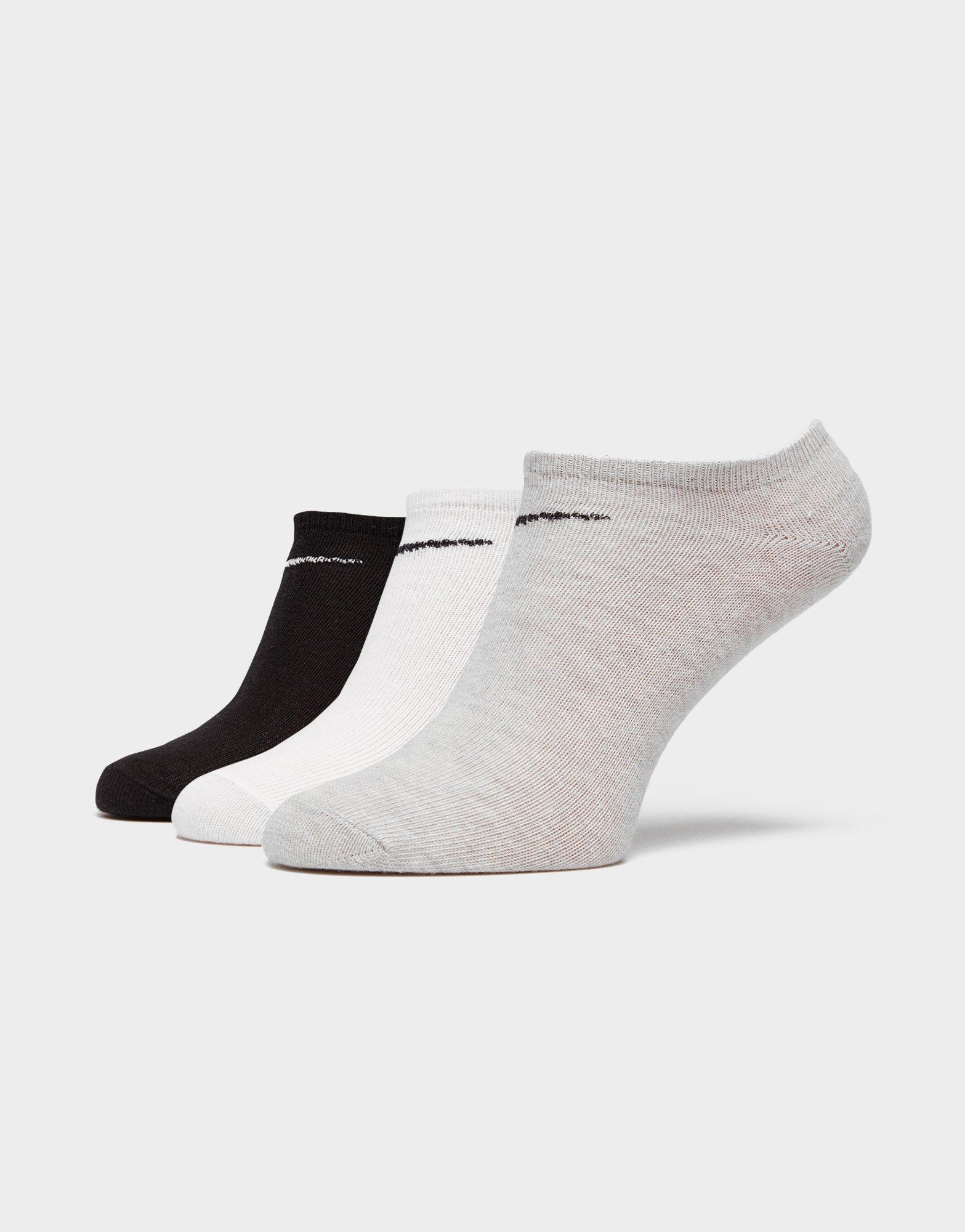 За тренировка или за ежедневието. Превърни тези чорапи в аксесоар, който ще ти осигури комфорт независимо къде си и какво правиш. Дължината им ги прави почти невидими над маратонките. Еластичната материя с ластик в горната част гарантира оптимално прилягане и отвежда влагата от кожата като осигурява сухота и свежест на краката. Подсилените пръсти и пета придават допълнителна здравина на модела. Всеки от чифтовете в комплекта е в различен цвят, разчупен с контрастиращ Swoosh. Може да се пере в пералня. | SX2554-901