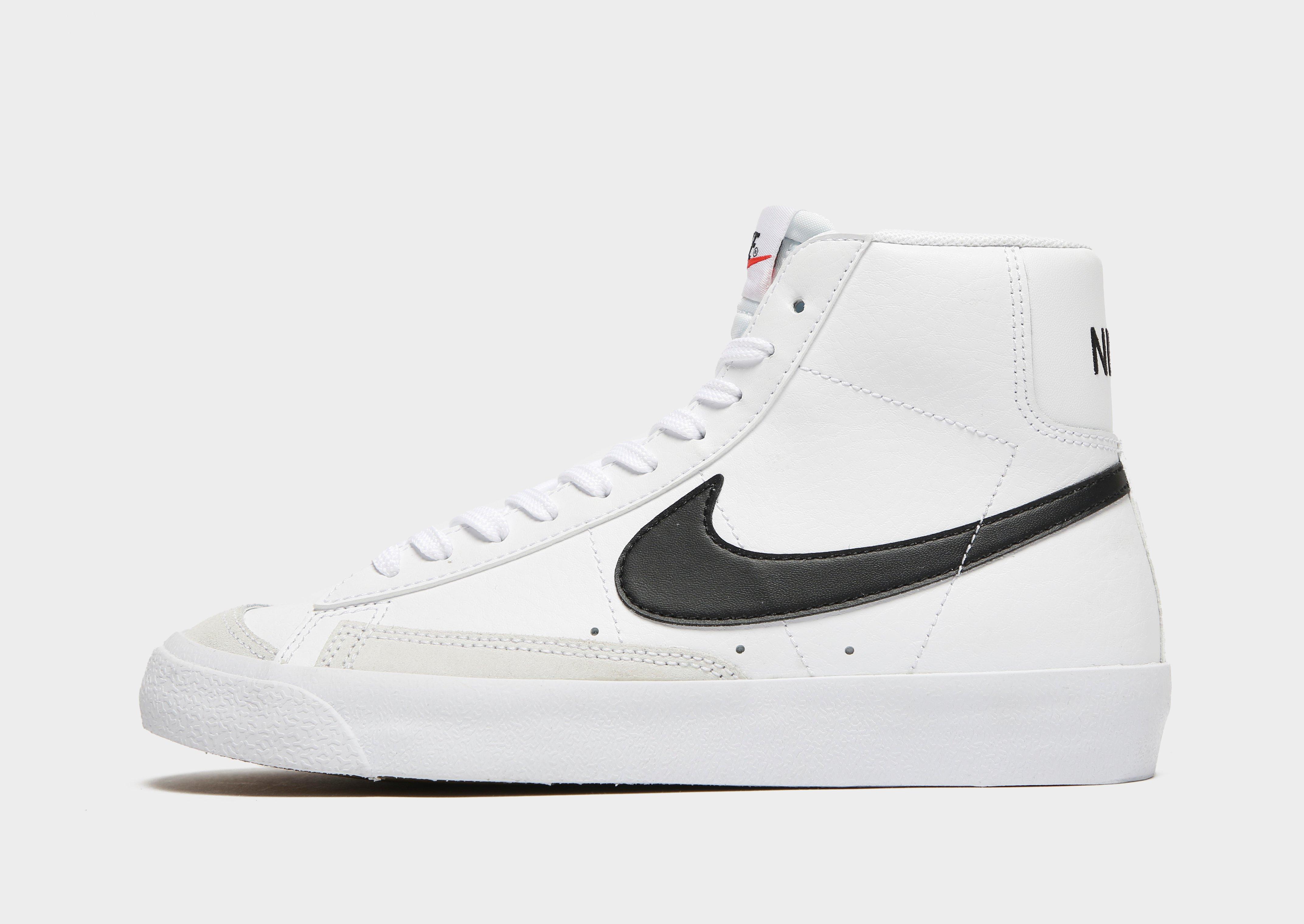 Освежи визията си с младежките кецове Blazer Mid '77 от Nike. Белият ретро модел е изработен от кожа, която осигурява здравина и първокласна визия. Високата подплатена яка до глезена и връзките стабилно придържат крака. Масивната междинна подметка амортизира движенията. Гуменият грайфер със зигзагообразен релеф създава отлично сцепление. Дизайнът се допълва от черно лого Swoosh на страничните панели.