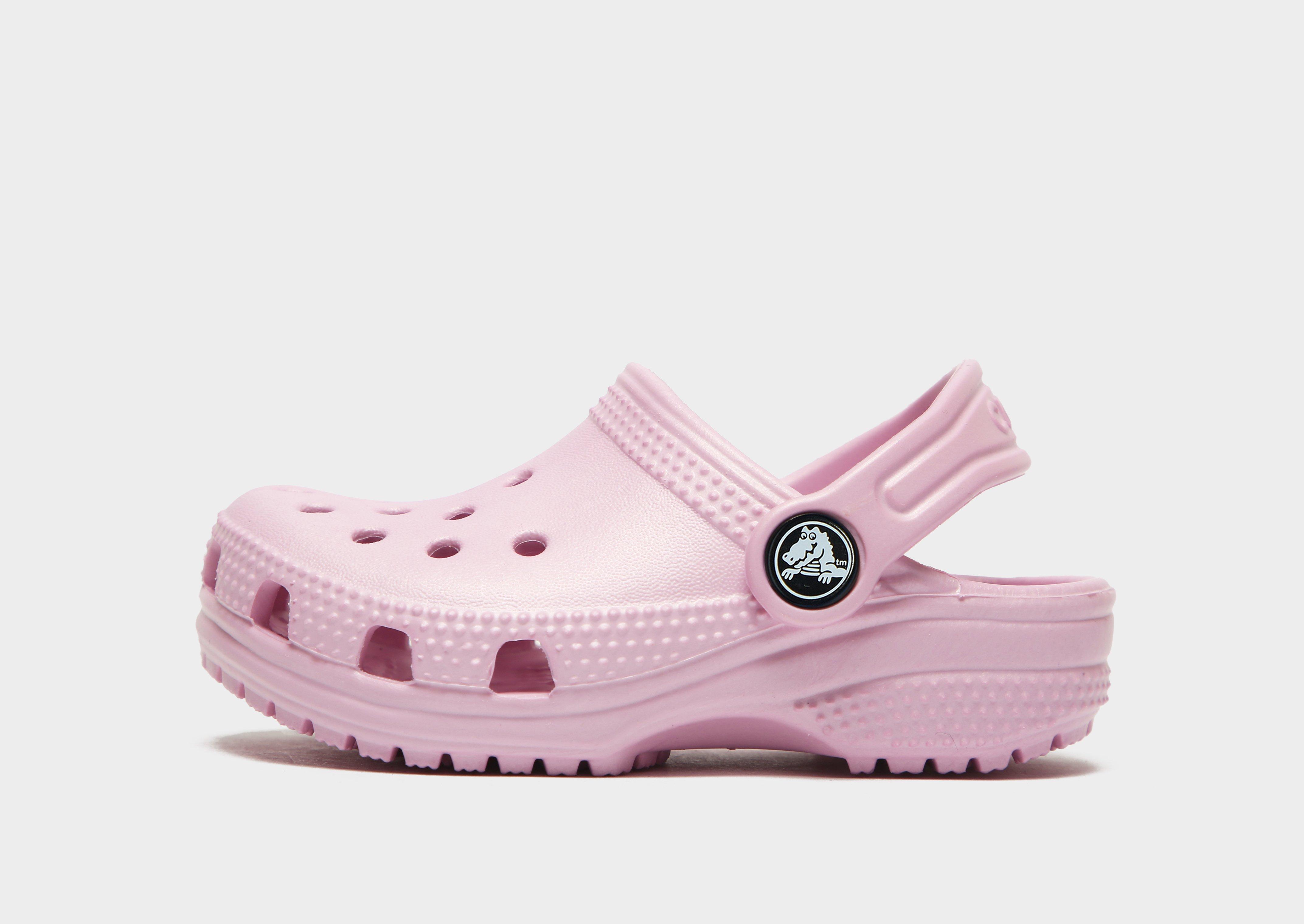 Осигури небрежен стил на мъничето си с детските Classic Clogs от Crocs. Розовите сандали са изработени от здрав и водоустойчив материал Croslite, който гарантира тяхната здравина. Гладкото ходило от пружинираща пяна осигурява комфорт от ново поколение и има перфорации на върха. Регулируемата лента около петата гарантира, че няма да падат, а здравата гумена външна подметка създава добро сцепление. Дизайнът се допълва от логото Crocs. Важно: Crocs са подходящи за широки стъпала. Ако имаш тесни крака, препоръчваме да вземеш един размер по-малки. При марка Crocs US размерът е изписан релефно на подметката.