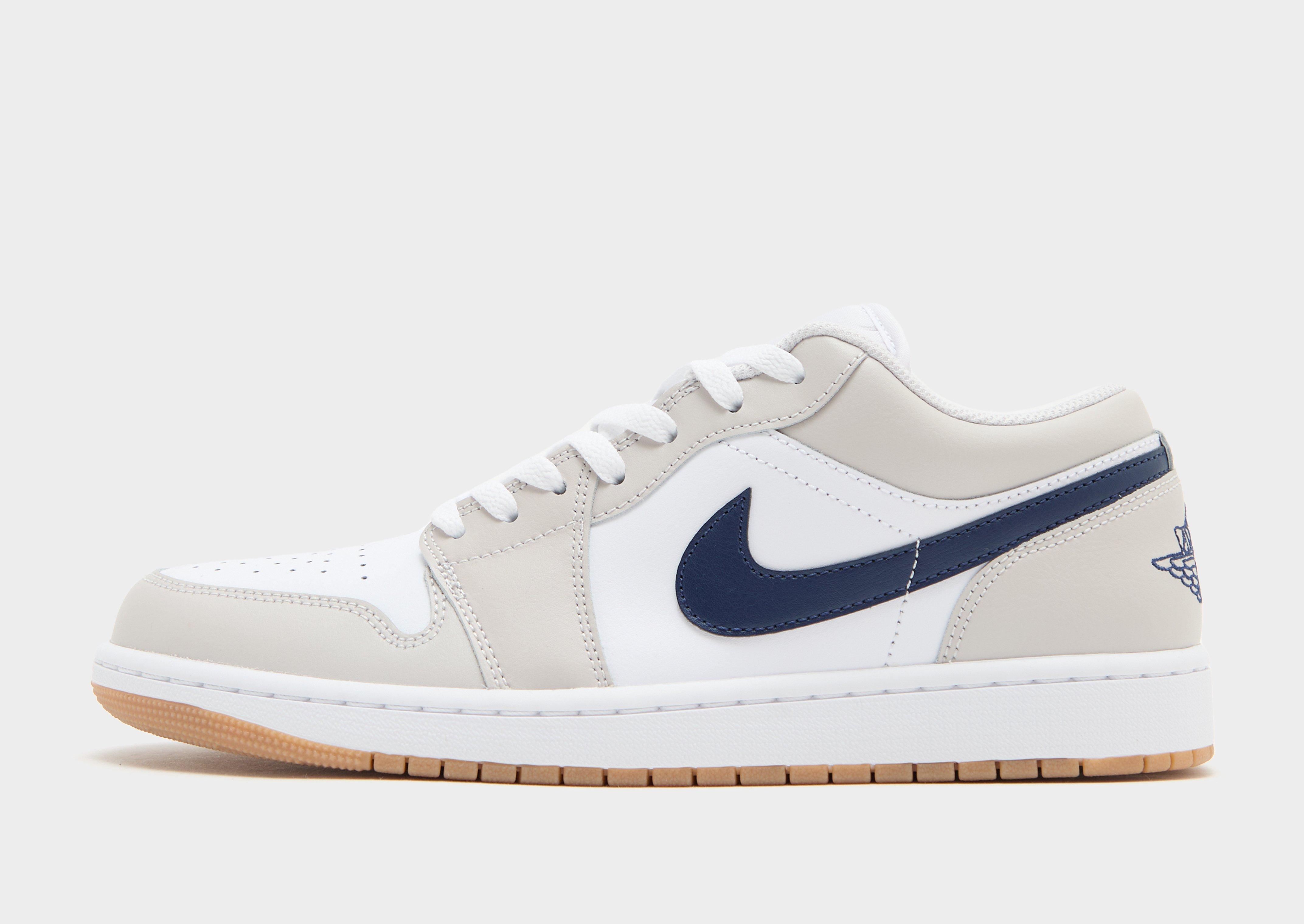 Мъжките маратонки Air 1 Low са вдъхновени от оригинала от 1985 г. и са култов елемент от историята на Jordan. Моделът в бяло и сиво е изработен от естествена кожа и изглежда топ. Има перфорации на пръстите и подплатена яка, а камерата Air Sole осигурява лекота и амортизация. Моделът завършва с гумен грайфер в кафяво. Дизайнът се допълва от логото Swoosh, Air Wings и Jumpman в тъмносиньо.