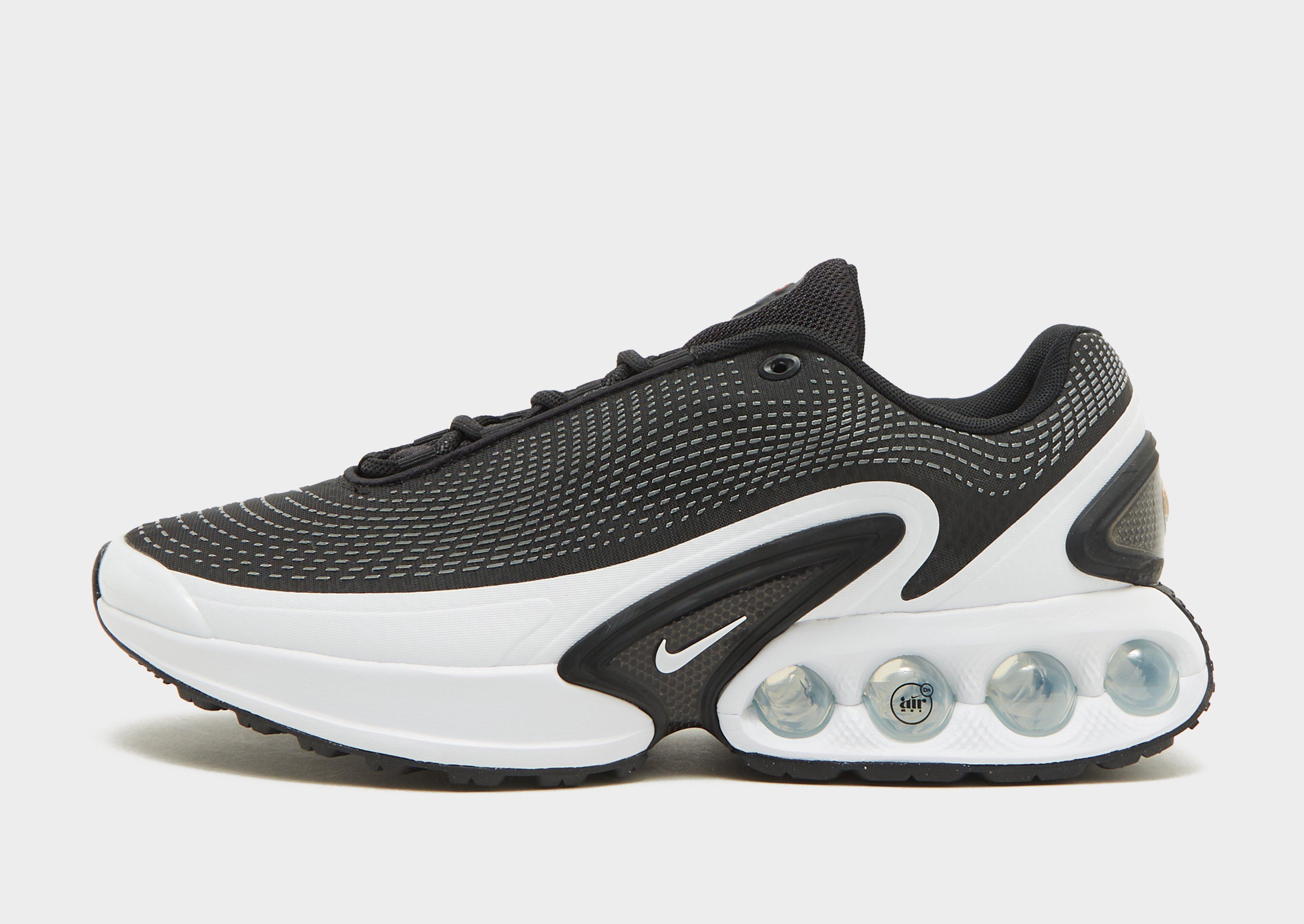 Вдигни нивото на колекцията си с мъжките маратонки Air Max Dn от Nike. Черните обувки с бели акценти са изработени от наслоен меш с принт за повече текстура на лицевата част. Маратонките имат връзки и подплатена яка. Леката междинна подметка от пяна и технология Dynamic Air амортизира всяка стъпка. Системата Air с две камери, които разпределят тежестта, реагира на всяко движение. Здравият гумен грайфер генерира сцепление. Дизайнът се допълва от емблематичния брандинг Swoosh.